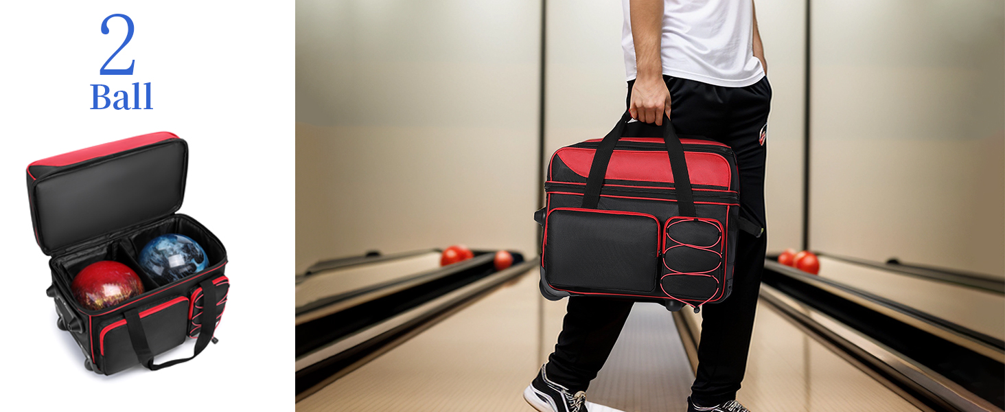 【Easy to Carry】: Our double ball bowling bag is equipped with rollers, which are smooth and sturdy, and can hold the weight well, making it easier and more comfortable to carry your bowling ball. The handle is easy to extend and retract, and there is another handle on the bowling bag if you don't want to use the extended handle. Meanwhile, the thicker carrying handle can provide more grip, multiple carrying options of the bowling ball bag roller can meet your needs in different scenarios.